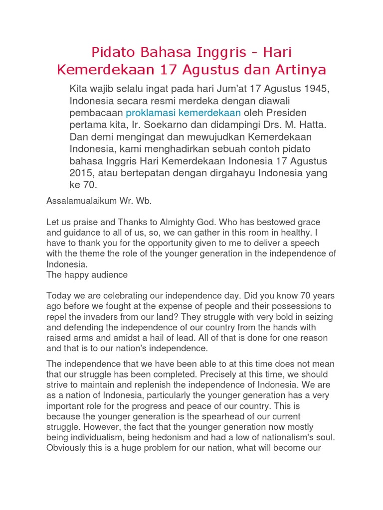 Soekarno didampingi Drs. Dan demi memperingati dan mewujudkan Kemerdekaan Indonesia admin membagikan 2 contoh naskah pidato bahasa Inggris Hari Kemerdekaan Indonesia 17 Agustus 2015 Mudah mudahan bisa menjadi referensi sahabat setia SBI dirumah. Your Pidato hari kemerdekaan indonesia dalam bahasa inggris photographs are available in this site. Pidato hari kemerdekaan indonesia dalam bahasa inggris are a topic that has been hunted for and liked by netizens today. You can Download or bookmark the Pidato hari kemerdekaan indonesia dalam bahasa inggris files here.